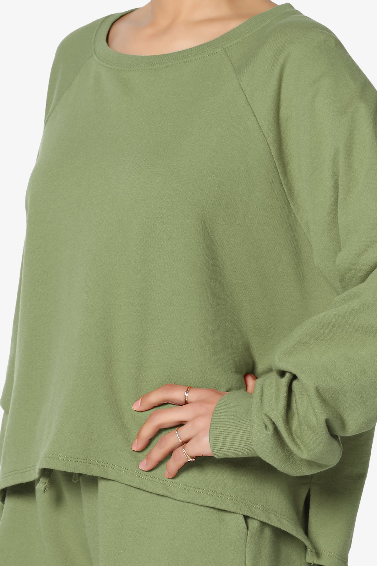 TOP : Oversized baggy fit, Raglan long sleeves, Ribbed Crew neck, High low side slit hem