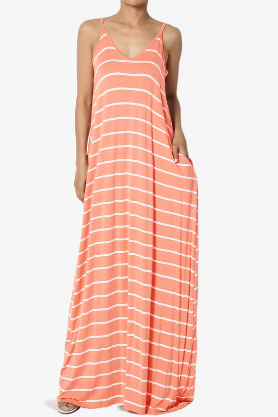 Explore the ultimate summer look with our Striped Sleeveless Maxi Dress! Perfect for any casual outing or beach adventure, this spaghetti strap cami long dress offers both comfort and style. Available now for a trendy summer update!