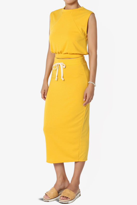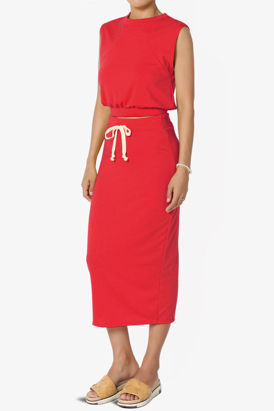 A perfect touch of casual fashion to add to your lounge wardrobe! A figure complementing two piece set let's you look your best while remaining comfortable at all times. Tank and midi skirt for a head-to-toe look, perfect with sneakers or sandals.Lightweight baby terry fabrication, Flattering fit TOP : Crew neck, Elasticized waist, semi-cropped hem SKIRT : Elasticized waist, High rise, Self-tie detail, Calf-length hem, Slit at back, Semi-Sheer Fits small to US size, take one size larger than normal(S=US 2-4, M=6-8, L=10-12, XL=14-16) Model size : 5'3" height, 34" bust, 24" waist, 34" hip, and is wearing a size S 96% Rayon, 4% Spandex; Hand or Machine wash cold, Laying flat to Dry Made in United States NOTICE: Before order, please carefully read the Size Chart we provided in the pictures