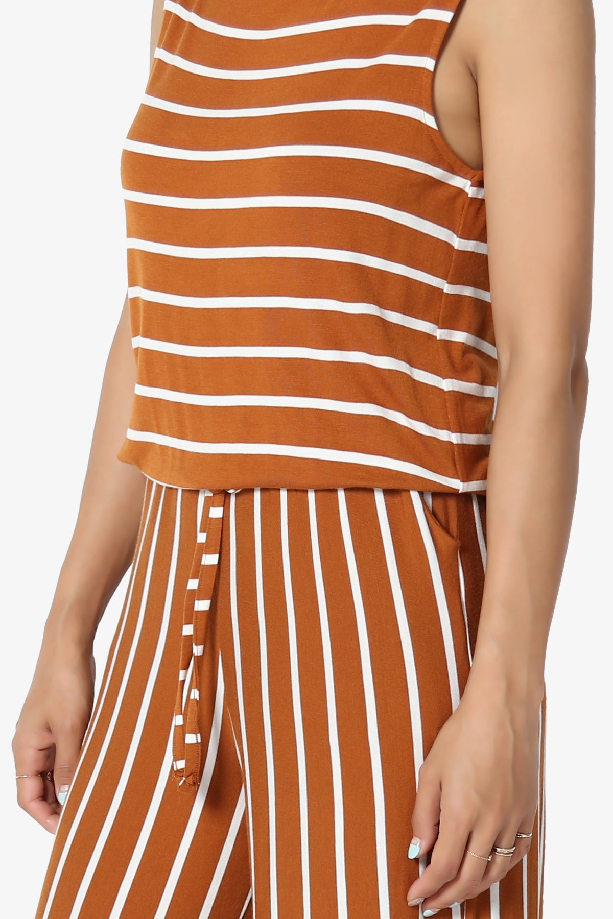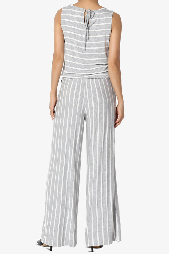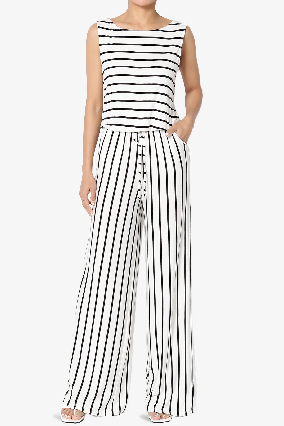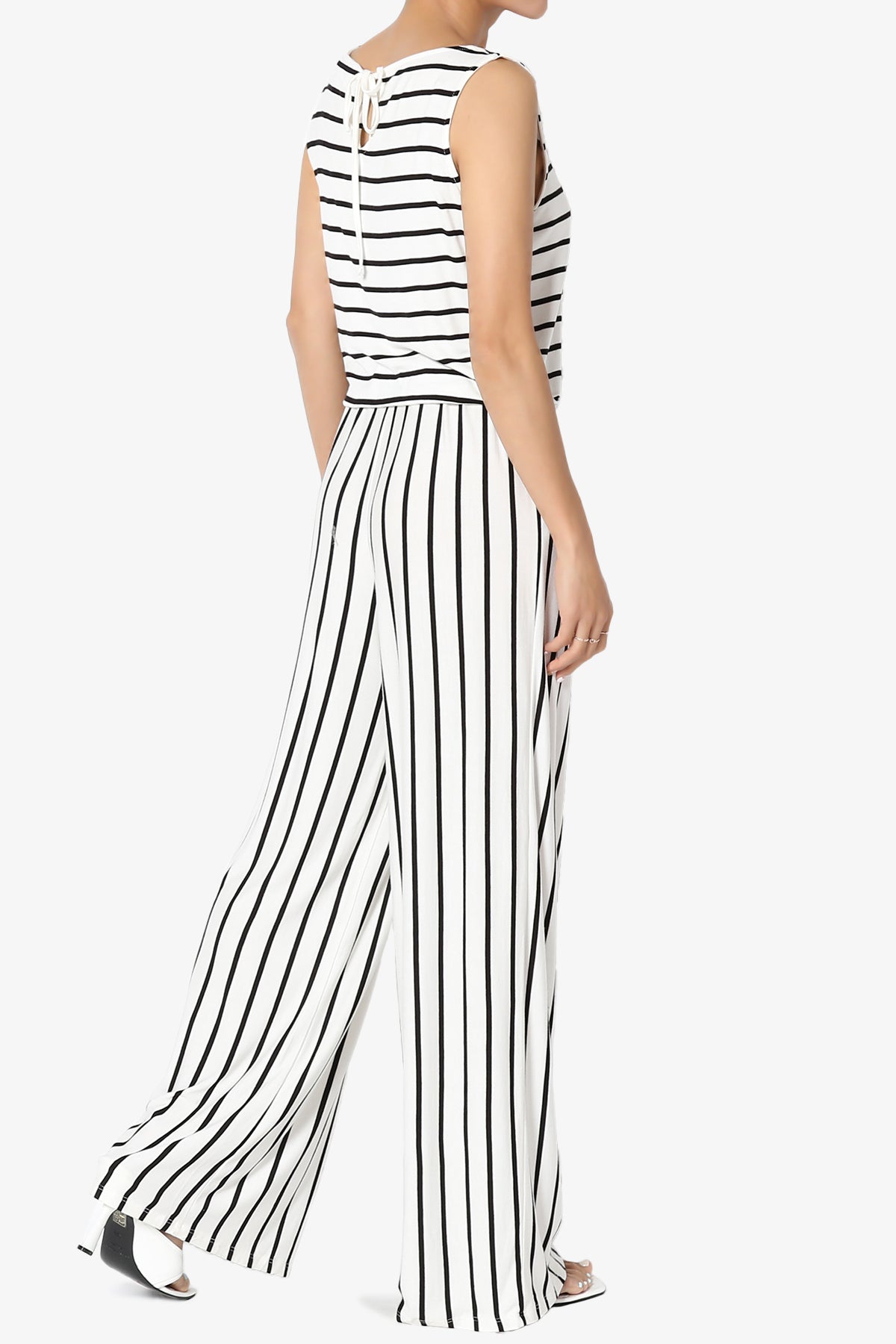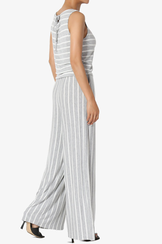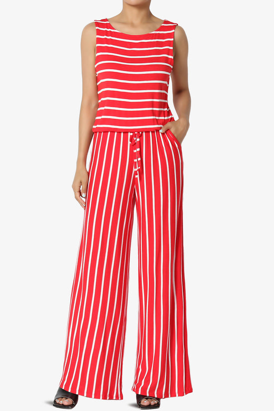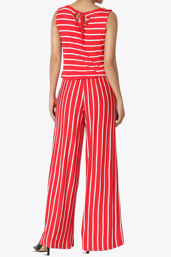 Give your wardrobe a jersey knit with this utility style jumpsuit. Timeless cool, sleeveless styling with draped fit. Style it with flats and cardigans for laid-back yet stylish look.Great comfortable fit with super soft and stretchy jersey knit Sleeveless, tie front elasticized waist, Keyhole back with tie closure Wide leg, High rise, Slant side pockets Fits true to size, take your normal size(S=US 4-6) Model size : 5'3" height, 34" bust, 24" waist, 34" hip, and is wearing a size XS 95% Rayon, 5% Spandex; Hand or Machine wash cold, Laying flat to Dry Made in Cambodia NOTICE: Before order, please carefully read the Size Chart we provided in the pictures