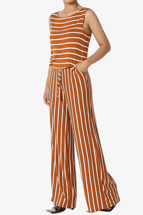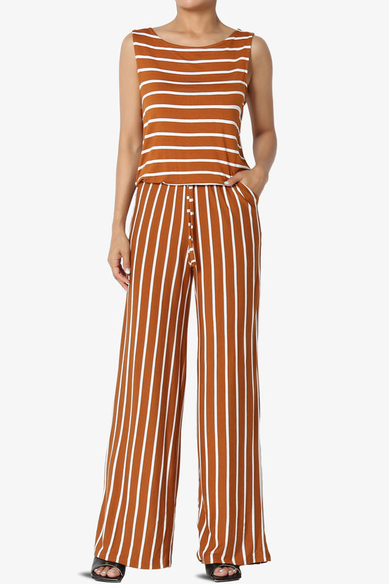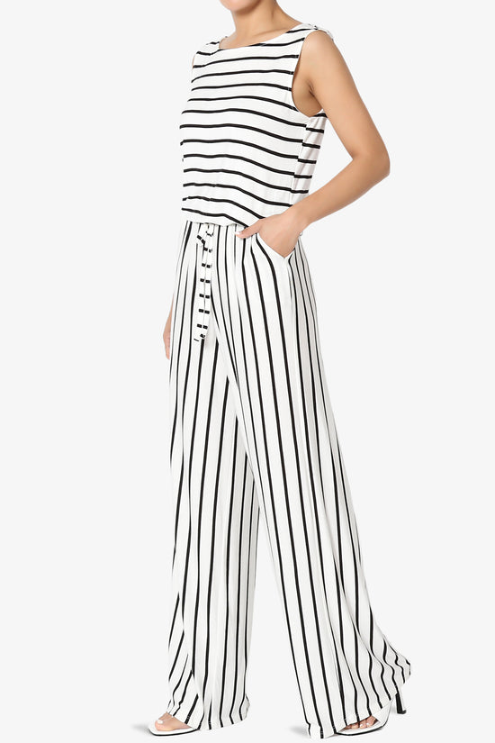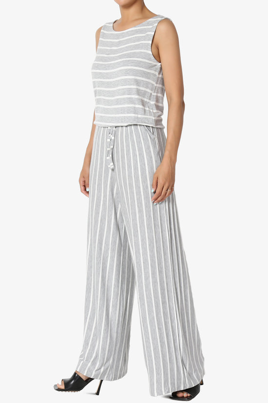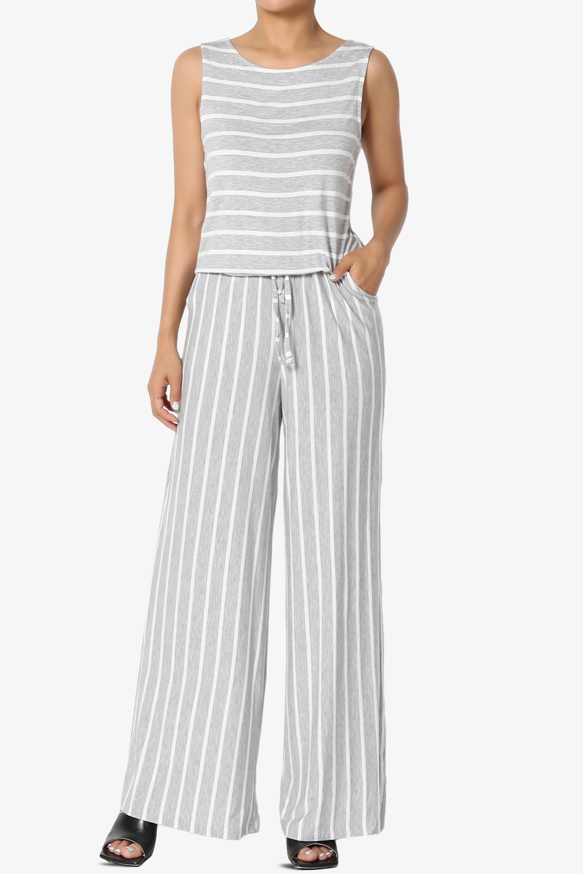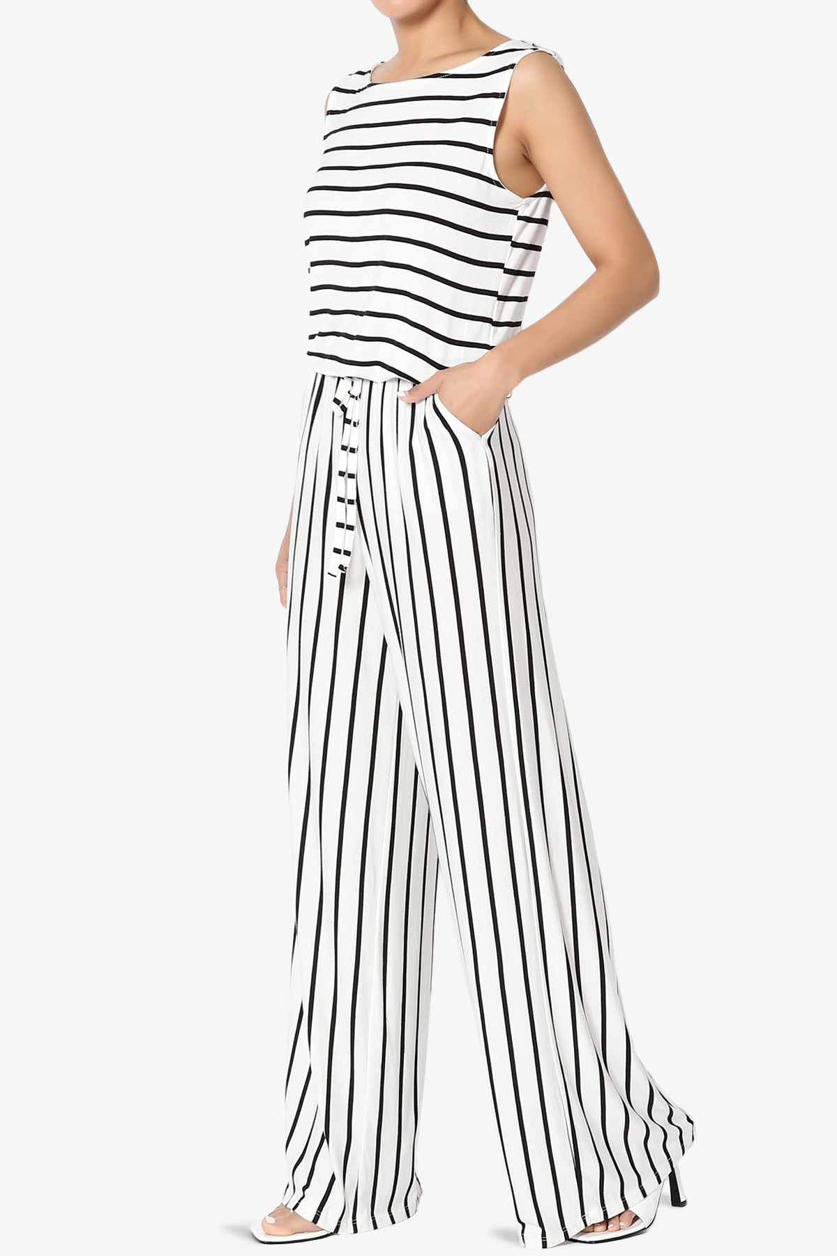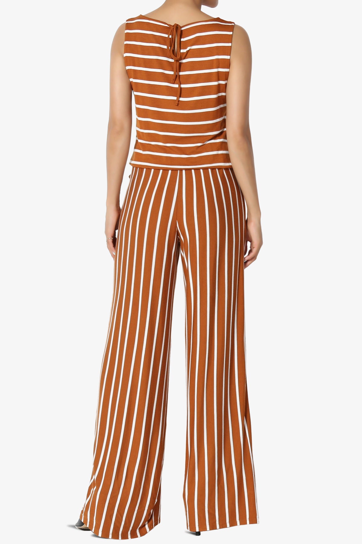 Give your wardrobe a jersey knit with this utility style jumpsuit. Timeless cool, sleeveless styling with draped fit. Style it with flats and cardigans for laid-back yet stylish look.Great comfortable fit with super soft and stretchy jersey knit Sleeveless, tie front elasticized waist, Keyhole back with tie closure Wide leg, High rise, Slant side pockets Fits true to size, take your normal size(S=US 4-6) Model size : 5'3" height, 34" bust, 24" waist, 34" hip, and is wearing a size XS 95% Rayon, 5% Spandex; Hand or Machine wash cold, Laying flat to Dry Made in Cambodia NOTICE: Before order, please carefully read the Size Chart we provided in the pictures