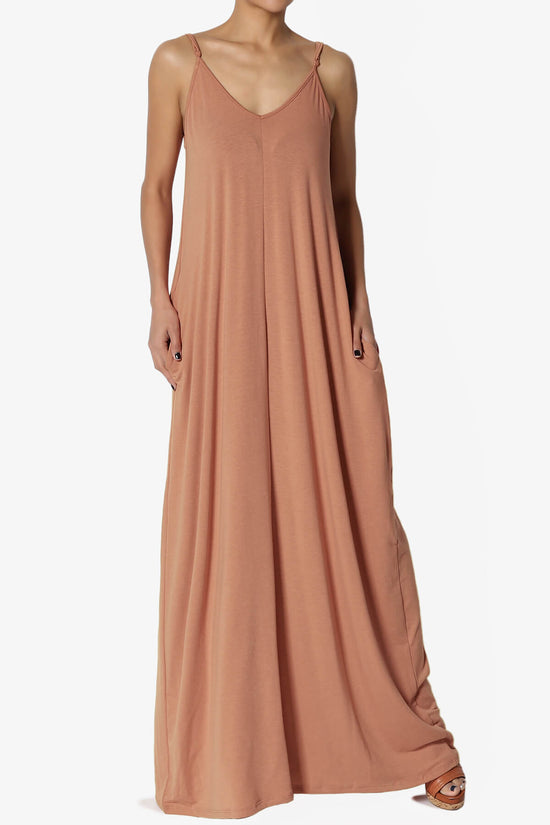 Embrace summer chic with this V-neck, jersey cami maxi dress.