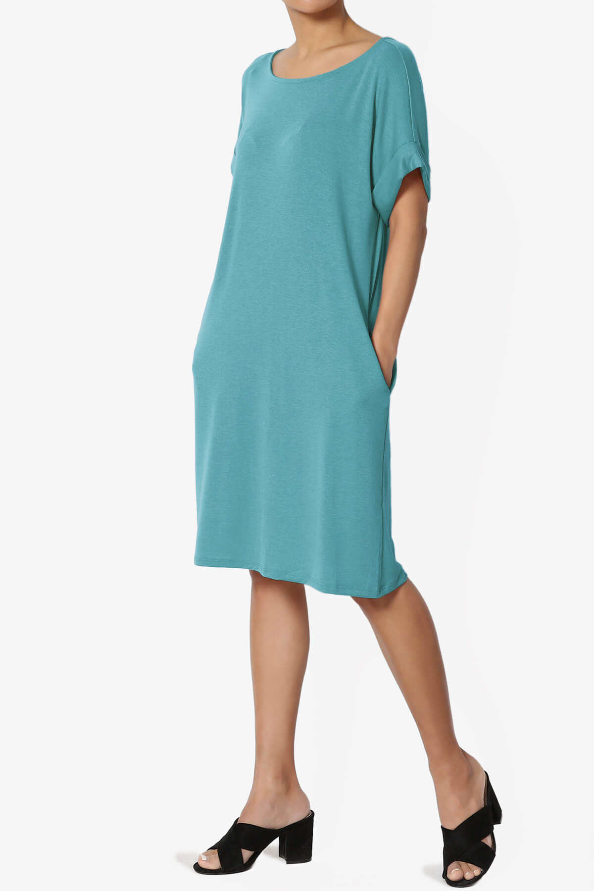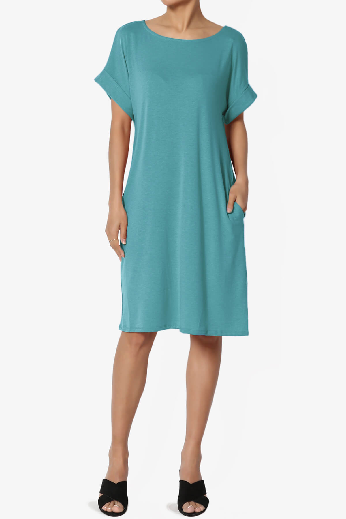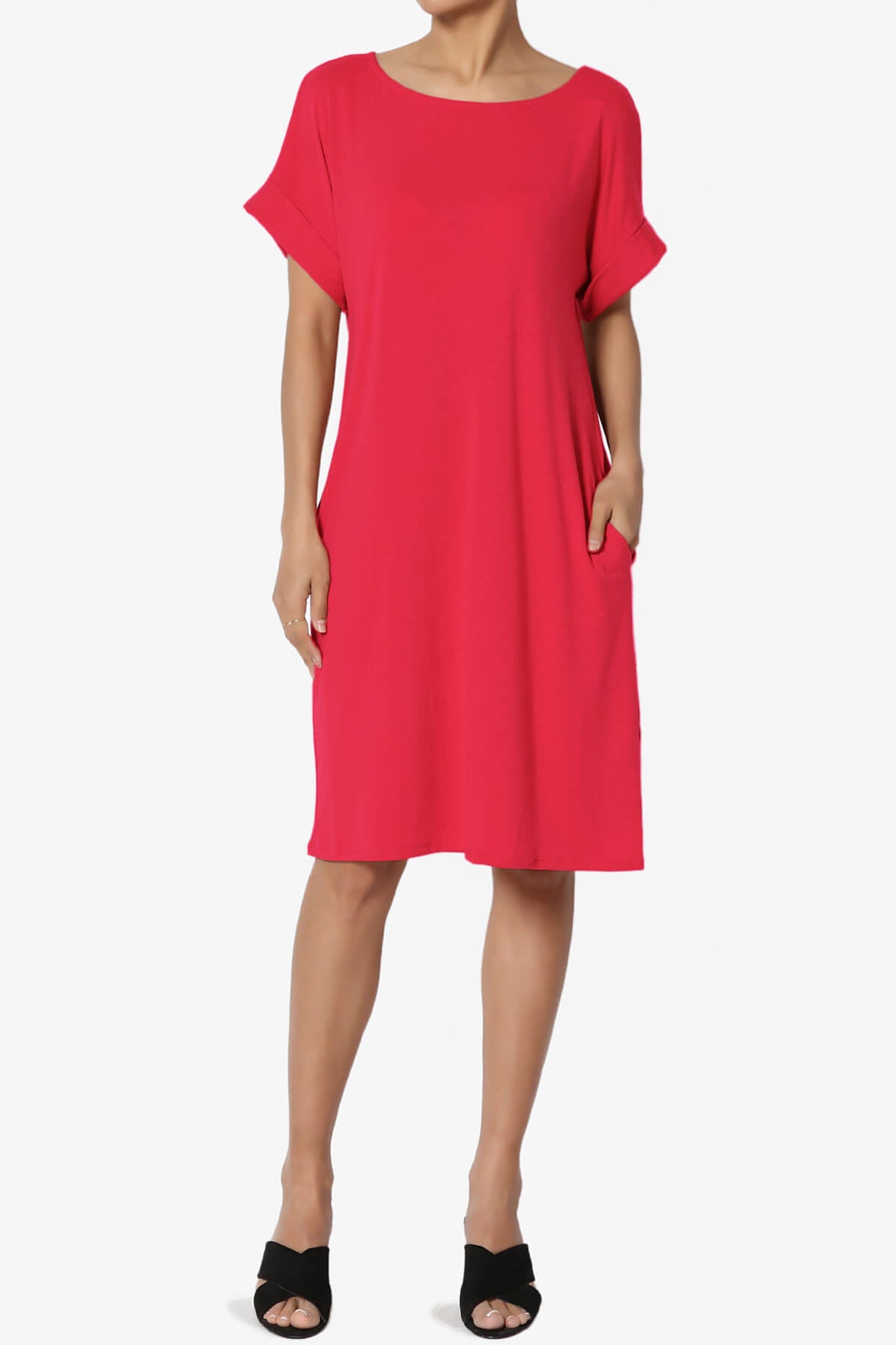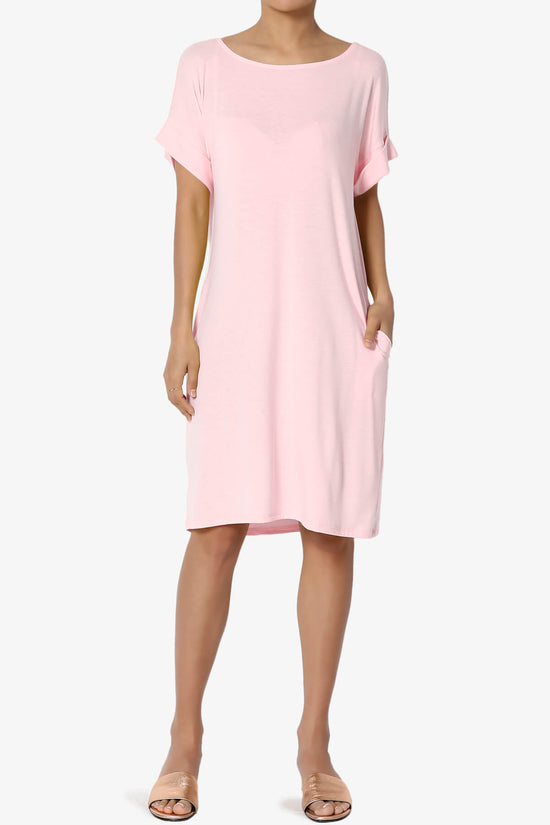 Comfy daily T-Shirt dress will be your next breezy favorite when the weather heats up summer, spring fall. It is crafted from with soft lightweight jersey to a relaxed silhouette and pockets. Style them with low-top trainers or sandals for a comfort weekend casual look.Esseintial T-shirt dress, Round neckline, Rolled short sleeves, Slit style pockets on side seams Relaxed cut for an effortless look that's ready to style Jersey - Perfectly rich, smooth fabric that beautifully drapes Fits true to US size, S=Size(4-6), M=Size(8-10), L=Size(12-14), XL=Size(16-18) Model size : 5'3" height, 33" bust, 24" waist, 34" hip, and is wearing a size S 57% Polyester, 38% Rayon, 5% Spandex; Machine Washable Made in Vietnam NOTICE: Before order, please carefully read the Size Chart we provided in the pictures