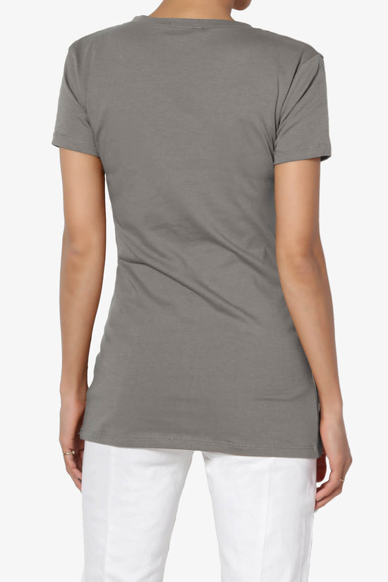V-neckline, Short sleeve T-shirts are the layering essential your closet needs. Slim fit, extended length, Plain solid color Stretch cotton blend for a soft, comfortable fit Style with everything from slim denim to a flowing maxi skirt—there's no wrong way to wear this piece. Model size : 5'4" height, 33" bust, 24" waist, 34" hip, and is wearing a size S, Fits true to US size, S=Size(2-4), M=Size(6-8), L=Size(10-12), XL=Size(14-16) 95% Cotton, 5% Spandex; Machine Washable Made in Cambodia NOTICE: Before order, please carefully read the Size Chart we provided in the pictures