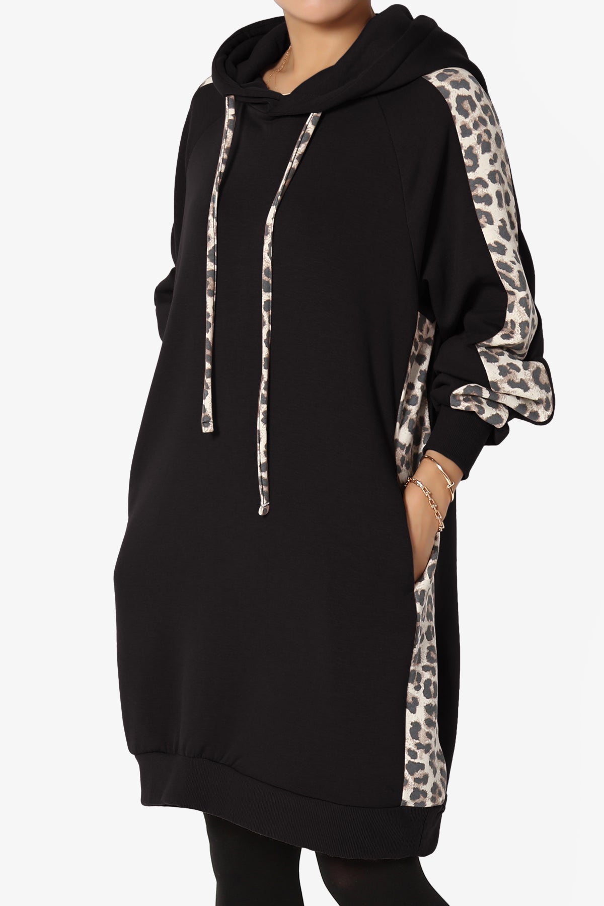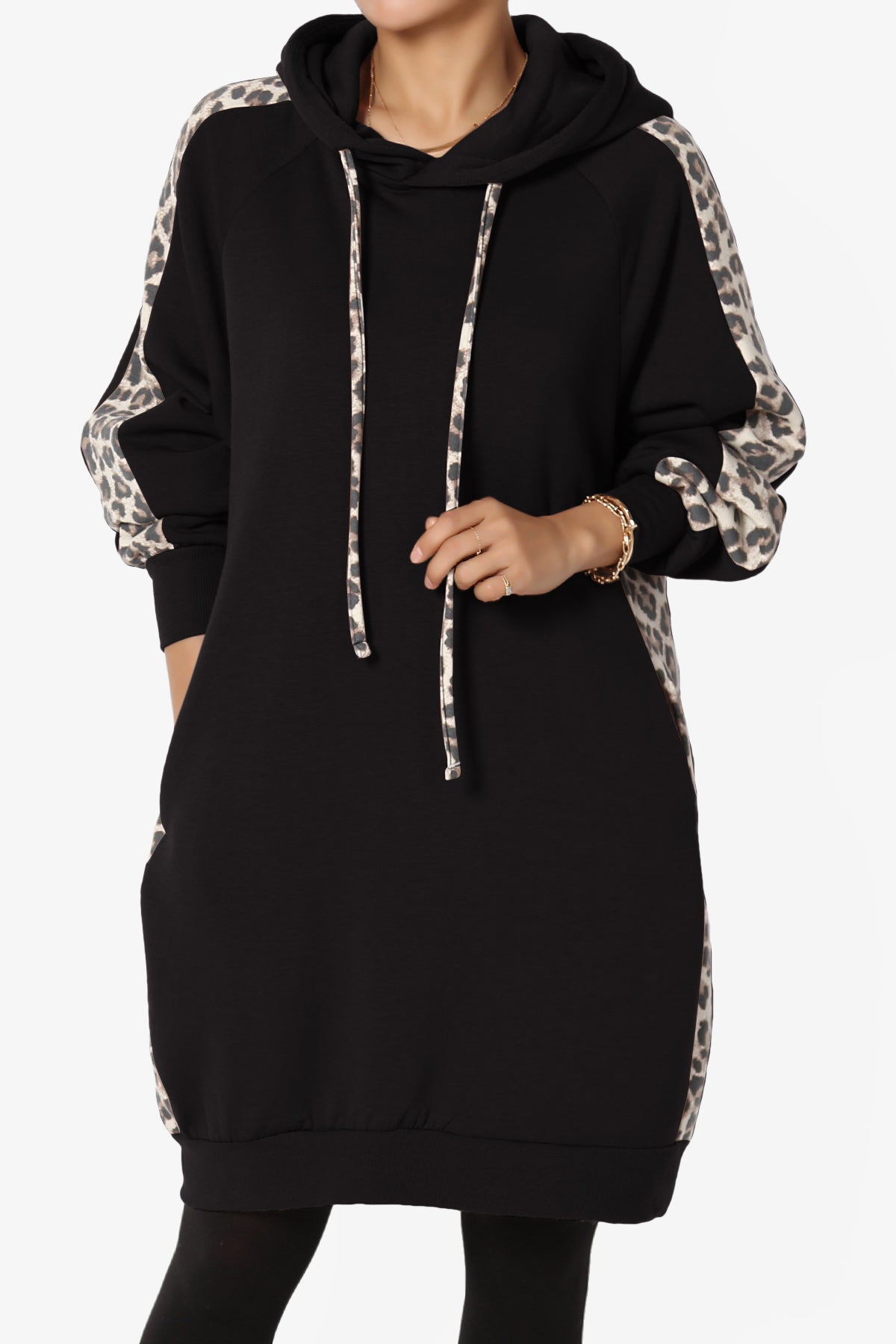 A cozy, super soft piece in a loose, longline design with leopard panel for a must-have casual look. Super soft brushed fleece, perfect for layering over your workout clothes, this hoodie gives you comfy, casual style. This is highly recommended for casual and daily occasions and you can wear it with leggings.