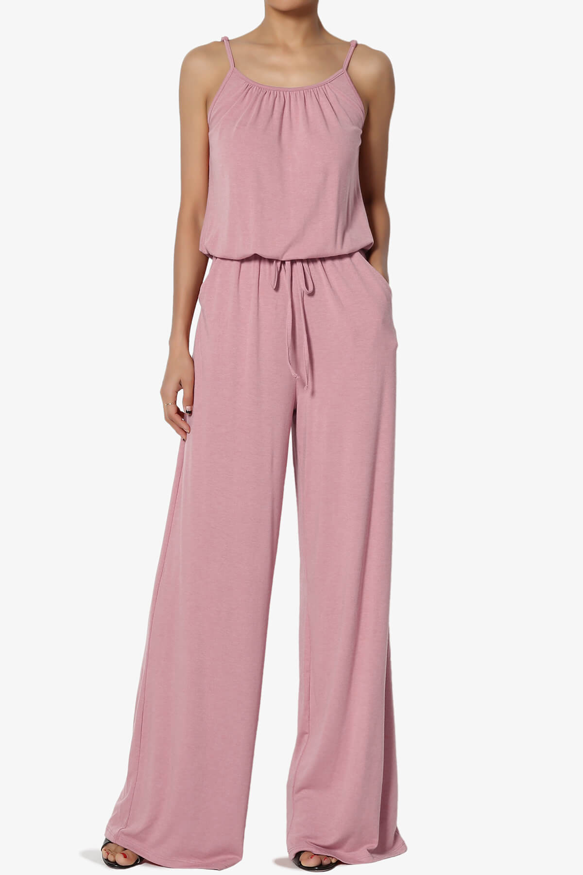 Squared neck, Sleeveless with wide straps Comfort and style, the smocked cami ensures a flattering fit, Elasticized waist, Pull-on style Side on seam pocket, Enjoy freedom of movement with the fashionable wide leg design Fits true to size, take your normal size, S = Size(2-6), M = Size(6-10), L = Size(10-14), XL = Size(14-18) Model size : 5'3" height, 33" bust, 24" waist, 34" hip, and is wearing a size S 70% Polyester, 26% Rayon, 4% Spandex; Machine Washable Made in Vietnam NOTICE: Before order, please carefully read the Size Chart we provided in the pictures