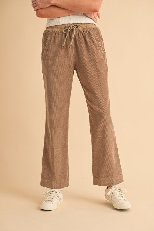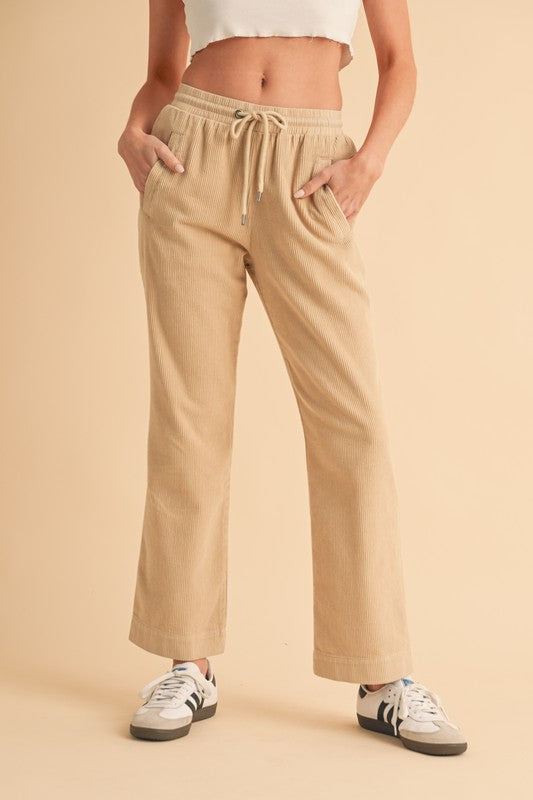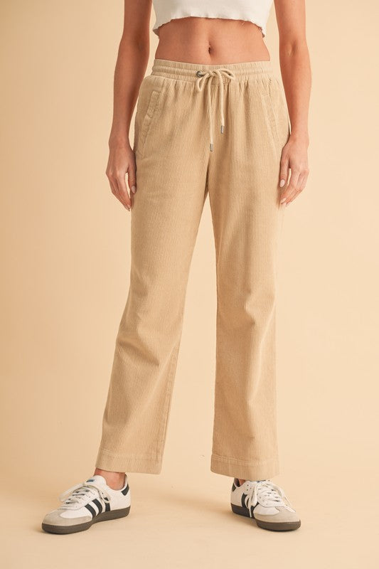 Comfy meets classic Aysha corduroy pants, designed with a relaxed fit and an adjustable drawstring waist. The perfect blend of laid-back and polished, these pants are a wardrobe staple for cozy days or casual outings.