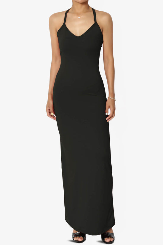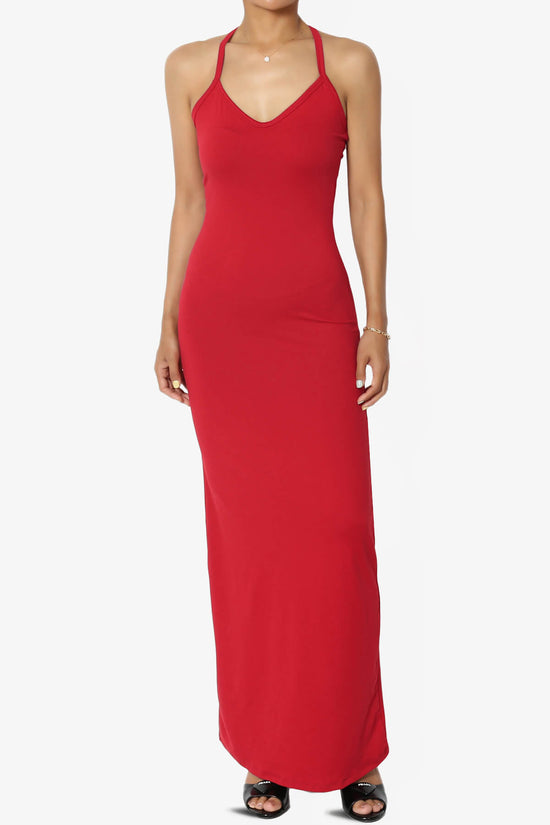 Discover comfort and style with our Spaghetti Strap Racerback V Neck Stretch Silky Knit Maxi Sun Cami Dress.