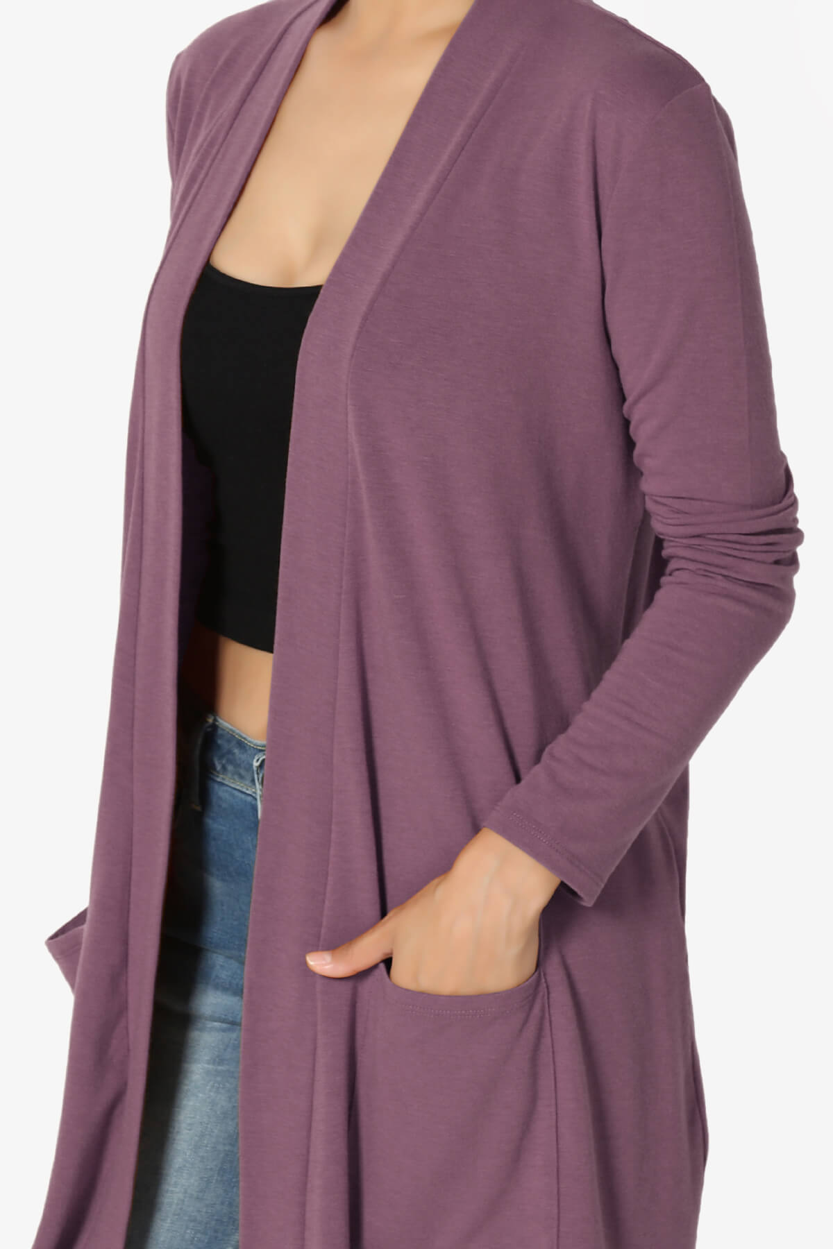 • ✔️ Open Front & Drapey Fit – Flattering collarless design with a relaxed shape perfect for layering