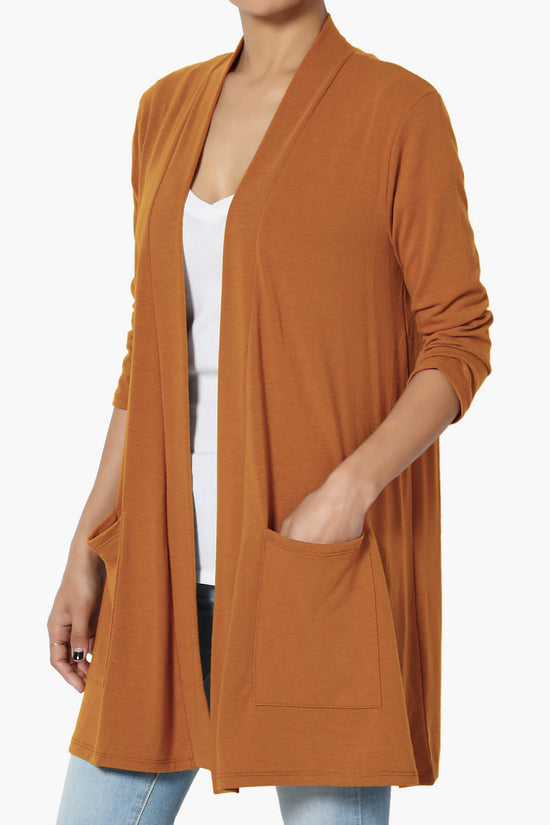 Embrace effortless layering with this chic, lightweight knit cardigan featuring a draped open front, casual 3/4 sleeves, and handy pockets.