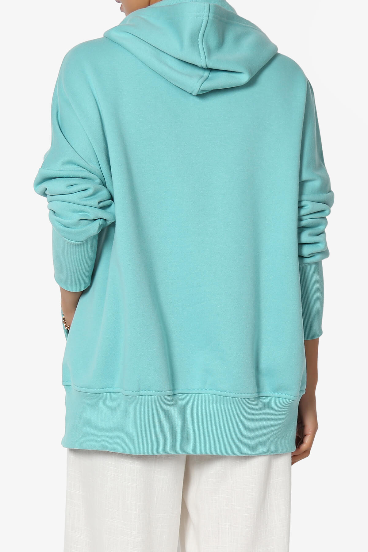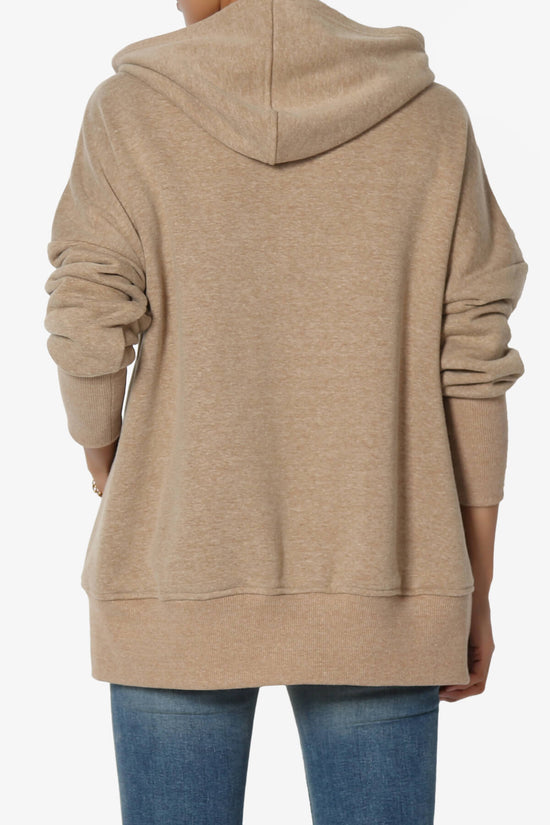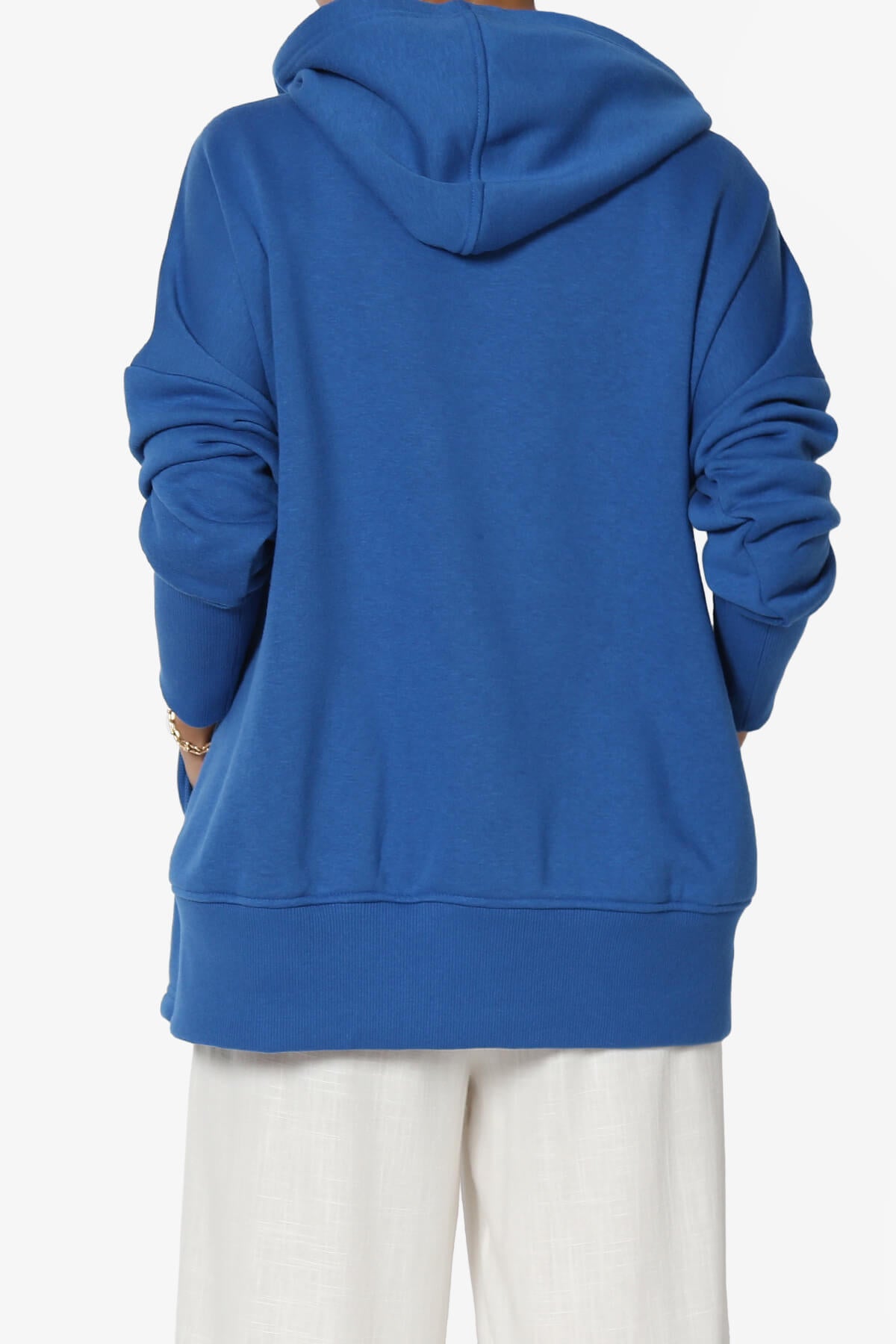 This classic hooded sweatshirt features an oversized fit, cozy fleece cotton blend, ribbed trim, and front pockets.