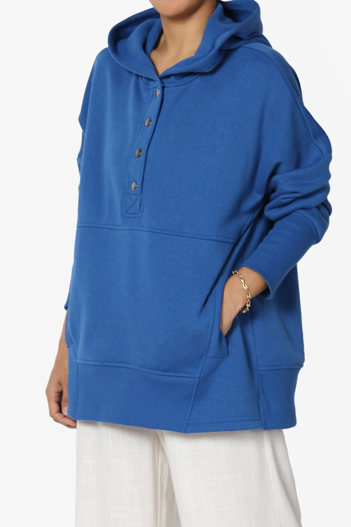 A soft cotton blend fleece for all-season comfort. Chic button details, ribbed trim, and a loose fit for a relaxed silhouette. Front pockets for functionality, perfect for an athletic or casual look. Pair with leggings or jeans for effortless weekend or travel attire. Model size : 5'3" height, 34" bust, 24" waist, 34" hip, and is wearing a size S, Fits true to US size, S=Size(4-6), M=Size(8-10), L=Size(12-14), XL=Size(16-18) 60% Cotton, 40% Polyester; Machine Washable Made in Vietnam NOTICE: Before order, please carefully read the Size Chart we provided in the pictures