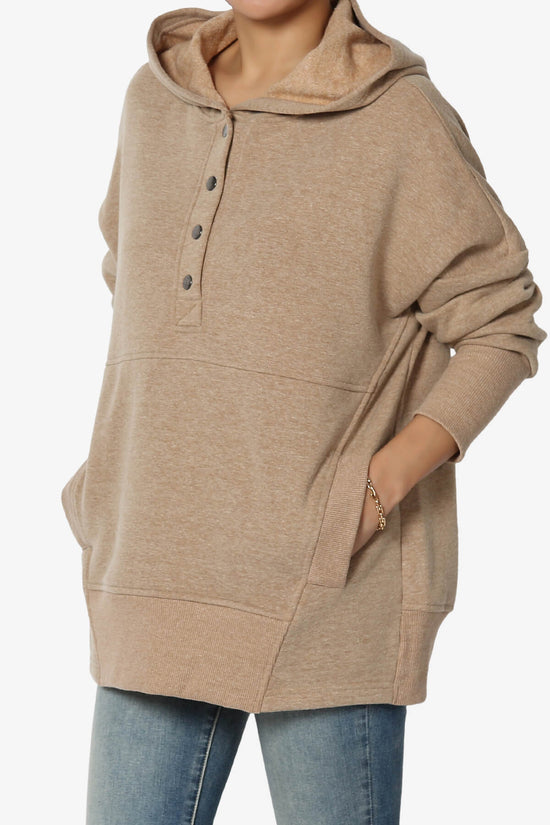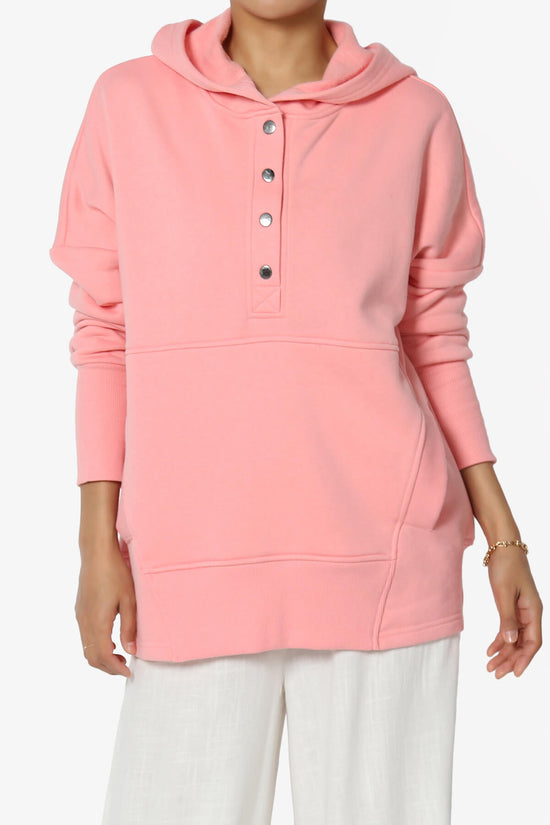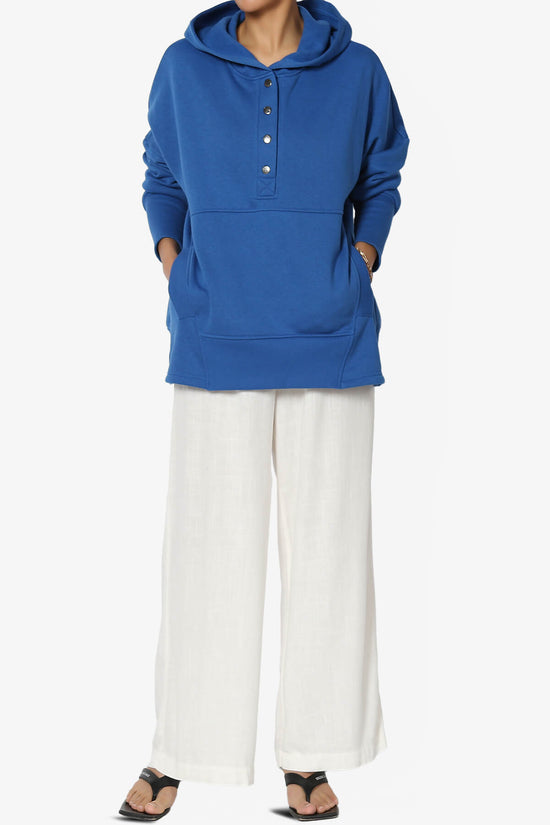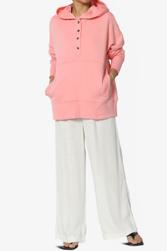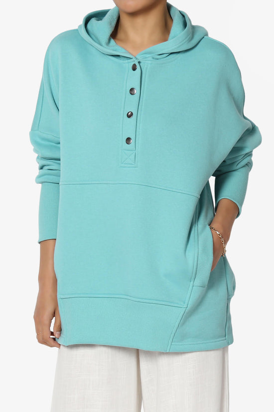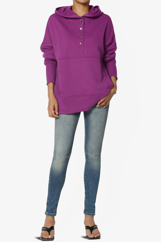 Elevate your casual style with our Buttoned V-Neck Hooded Pullover Top.
