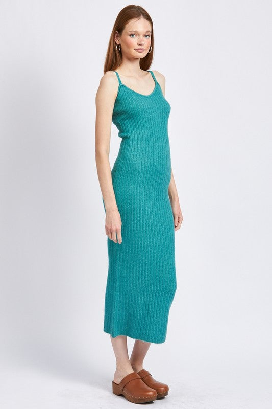 Emory Park SPAGHETTI STRAP RIB KNIT BODYCON MIDI DRESS