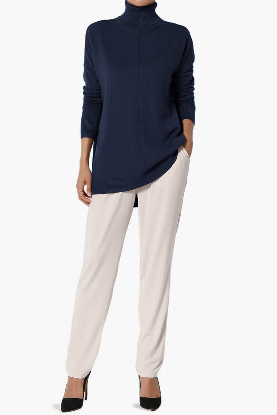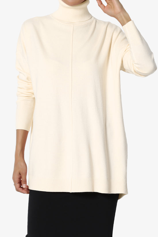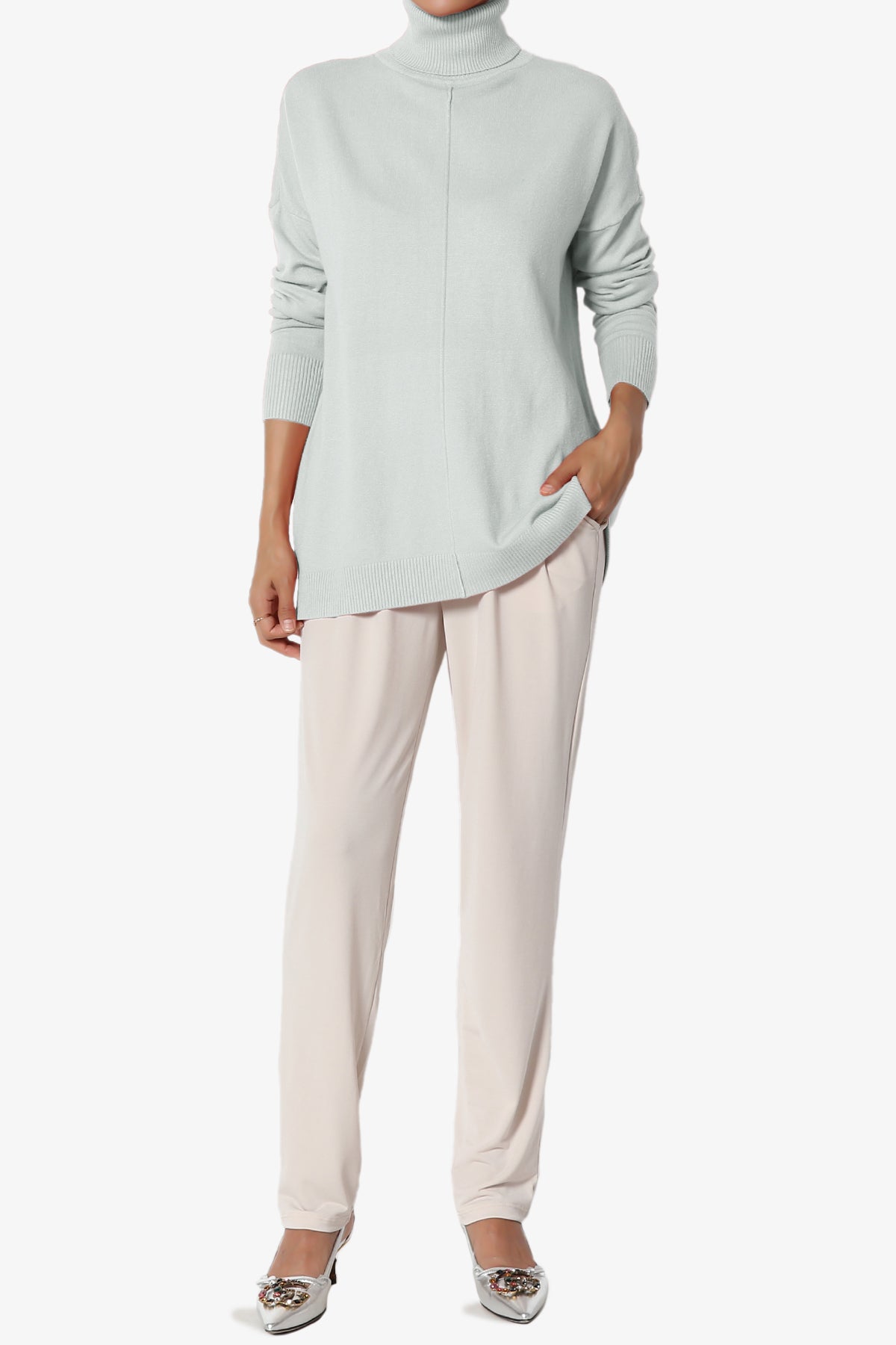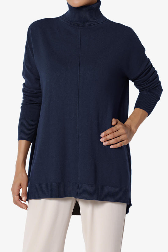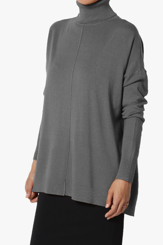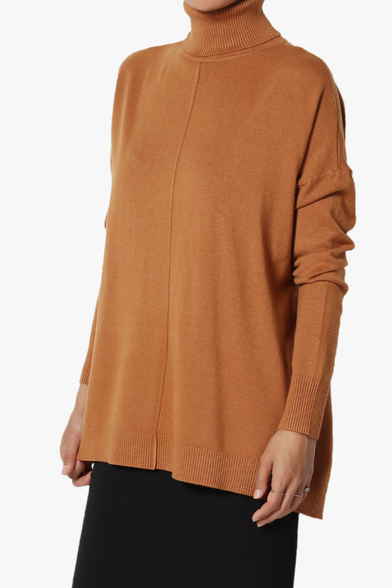 What's better than feeling cosy? Looking great at the same time. Crafted with an oversized fit, this turtle neck sweater is all you need to achieve a comfy look that doesn't compromise on style. Best of both worlds. Pull-over style. Long dolman sleeeves and enhanced by center seams and rib-knit trim. Wear it with tights and boots for fall, winter cozy style.Comfortable chic look for day to night, casual, office, dress up or down.