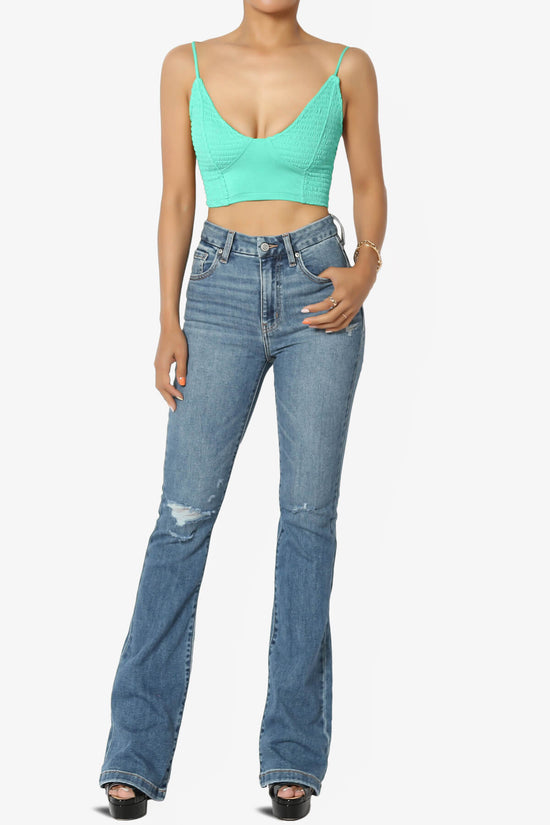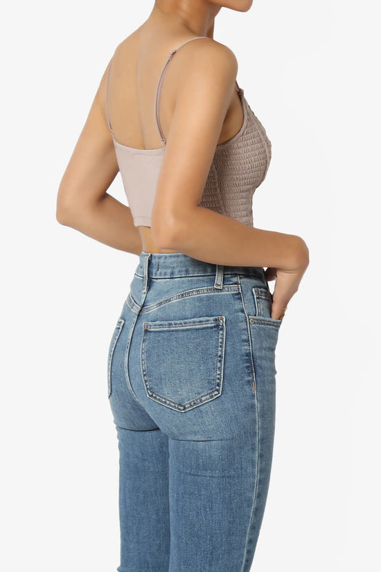 The smocked jersey triangle bralette is a versatile piece that can be worn throughout the seasons. Whether it's layered under a cozy sweater during fall and winter or paired with high-waisted shorts for a breezy summer look, this bralette adds a touch of effortless style to any occasion. Its comfortable jersey fabric and smocked detailing make it a go-to choice for both casual and dressed-up ensembles. Embrace comfort and fashion no matter the weather with the smocked jersey triangle bralette.