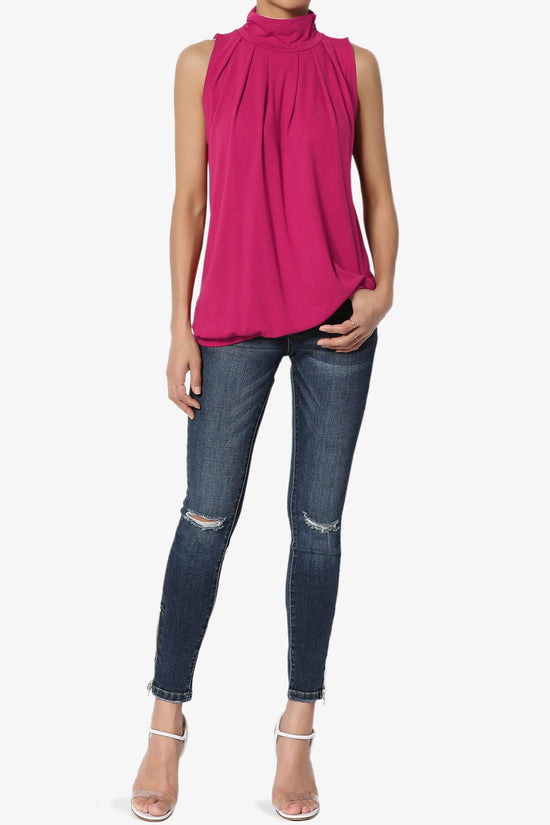 Pleats give texture to the front and mock neck of this jersey tank top that comes in staple colors to match any outfit. They're perfect shoulder width for hiding underwear and banded hem for hiding muffin tops. Great to wear for Work, Beach, Traveling, Vacation, Daily Wear, Party, and etc.