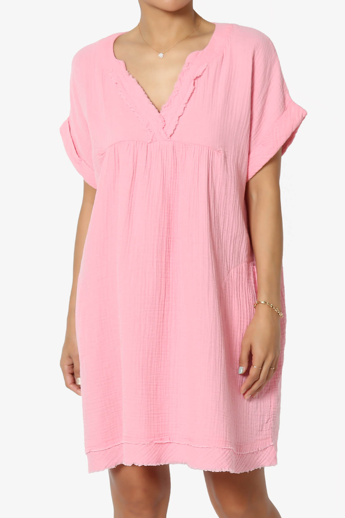 • Discover latest trend: Women's Casual Loose Short Sleeve V Neck Crinkled Gauze Babydoll Shift Mini Dress, a must-have for a chic, laid-back wardrobe.