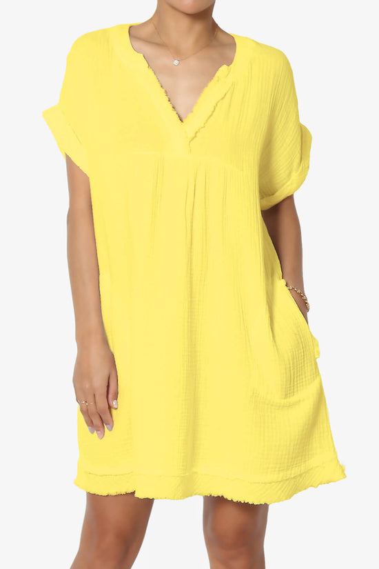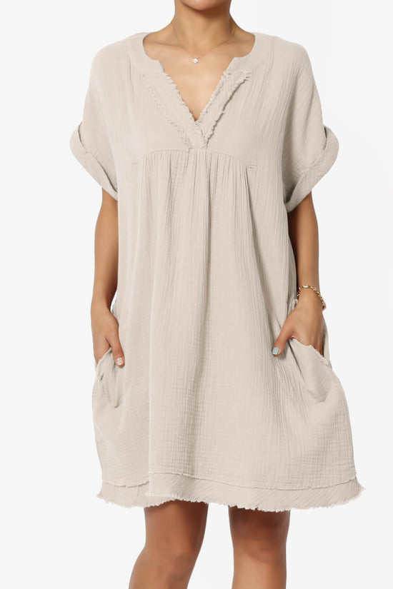 Embrace effortless style with our Casual Loose Short Sleeve V Neck Cotton Gauze Babydoll Shift Mini Dress.