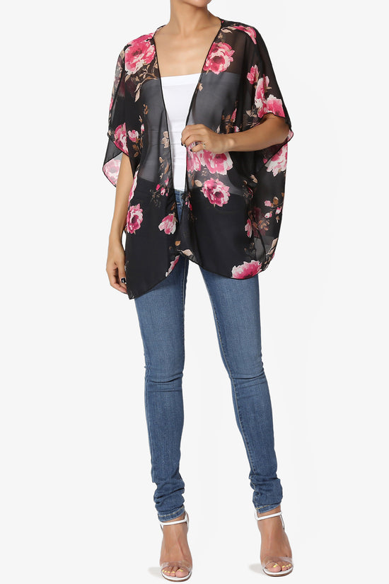 Elevate your look with easy to wear chiffon cardigan. Simple layers work wonders for tidying up outfits, and a staple cardigan that's got a little short length is perfect for added polish. Layer this cardigan over a tank top for an easy dressed up look or wear it over a swimsuit as a lightweight cover up.Perfect for layering, Open front Oversized, floral print semi sheer chiffon Kimino elbow length sleeve, Eash to wear Fits true to US size, however those who are between sizes should take the larger size, S=Size(2-4), M=Size(6-8), L=Size(10-12) Model size : 5'3" height, 33" bust, 24" waist, 34" hip, and is wearing a size S 100% Polyester; Machine Washable Made in United States NOTICE: Before order, please carefully read the Size Chart we provided in the pictures