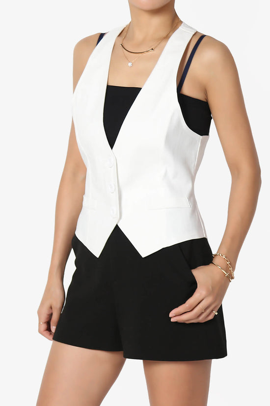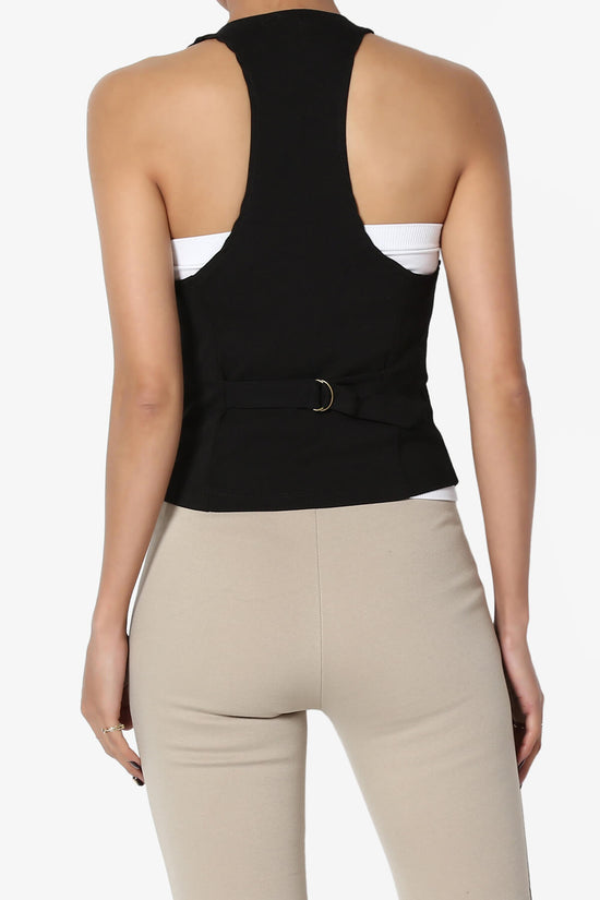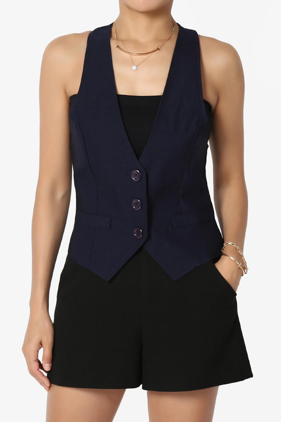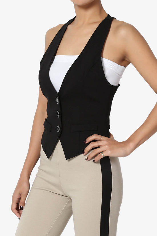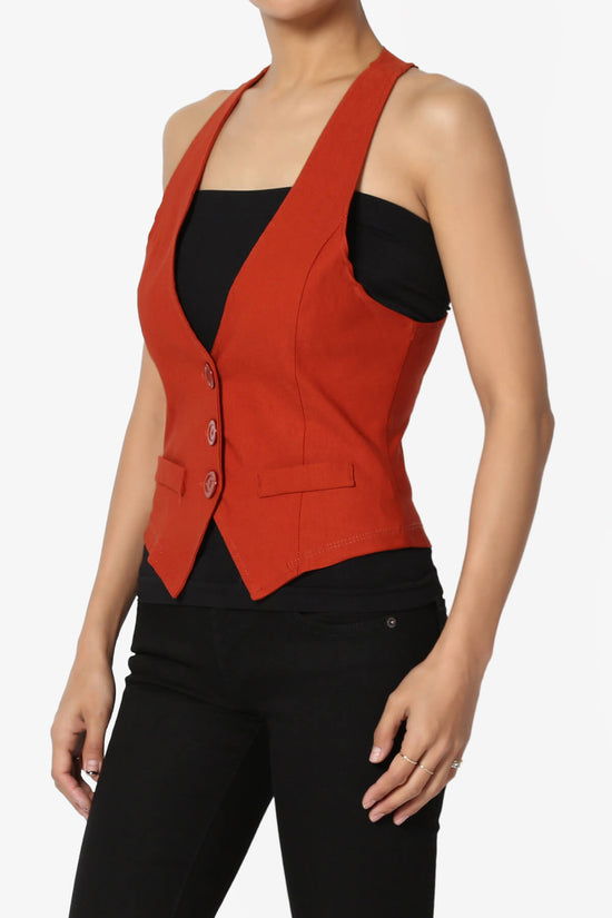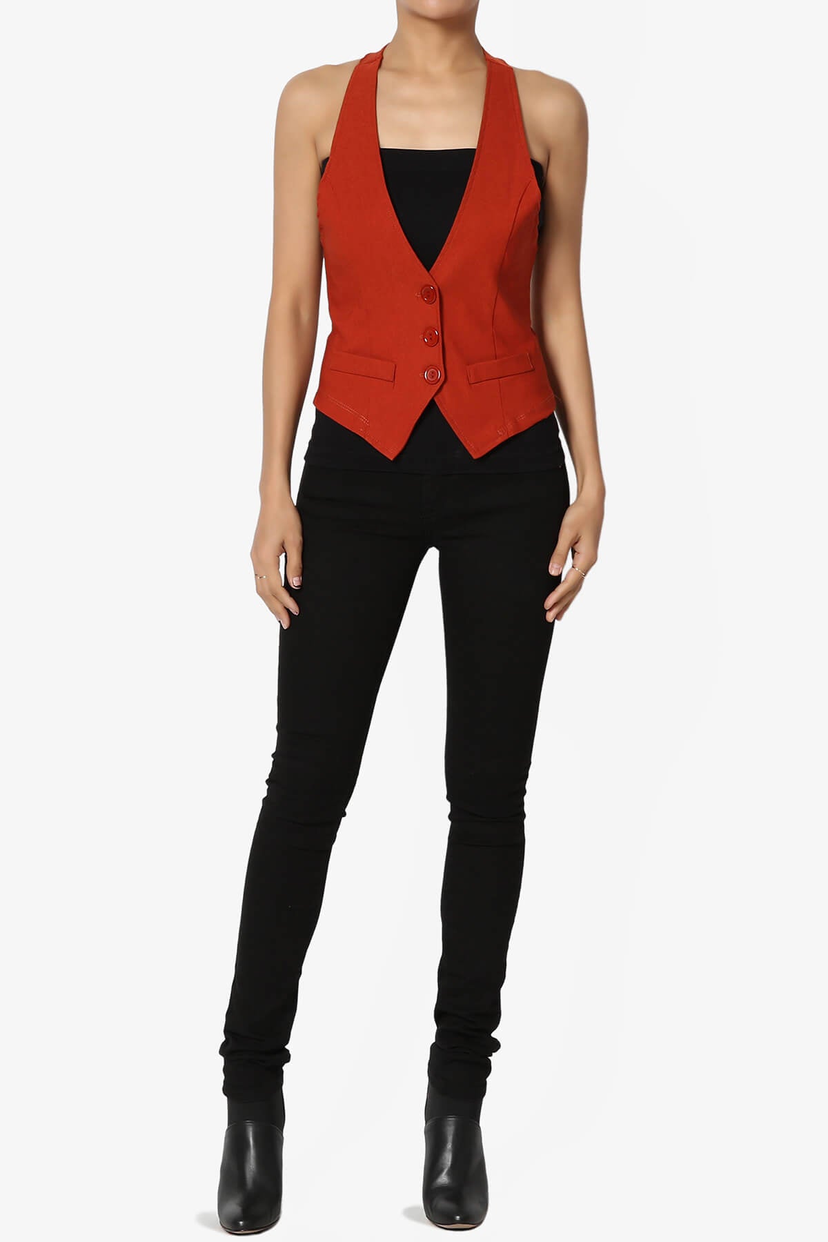 Complete ready-to-wear line that has found favor by adding an urban edge to feminine suitable racerback vest. Styled like his, with princess seaming for a more feminine fit. Whether alone under a blazer or worn over a buttons shirt, it's a powerful style play.Women's stretch woven + racerback slim-fitting vest Sleeveless styling, V-neck with 3 button closure, Deep V neck Faux welt pockets, pointed hem, Adjustable back waist strap, Unlined Fits true to US size, take your normal size, S = Size(4-6), M = Size(8-10), L = Size(12-14), XL = Size(16-18) Model size : 5'3" height, 33" bust, 24" waist, 34" hip, and is wearing a size S 69% Rayon, 26% Nylon, 5% Spandex; Machine Washable Made in China NOTICE: Before order, please carefully read the Size Chart we provided in the pictures